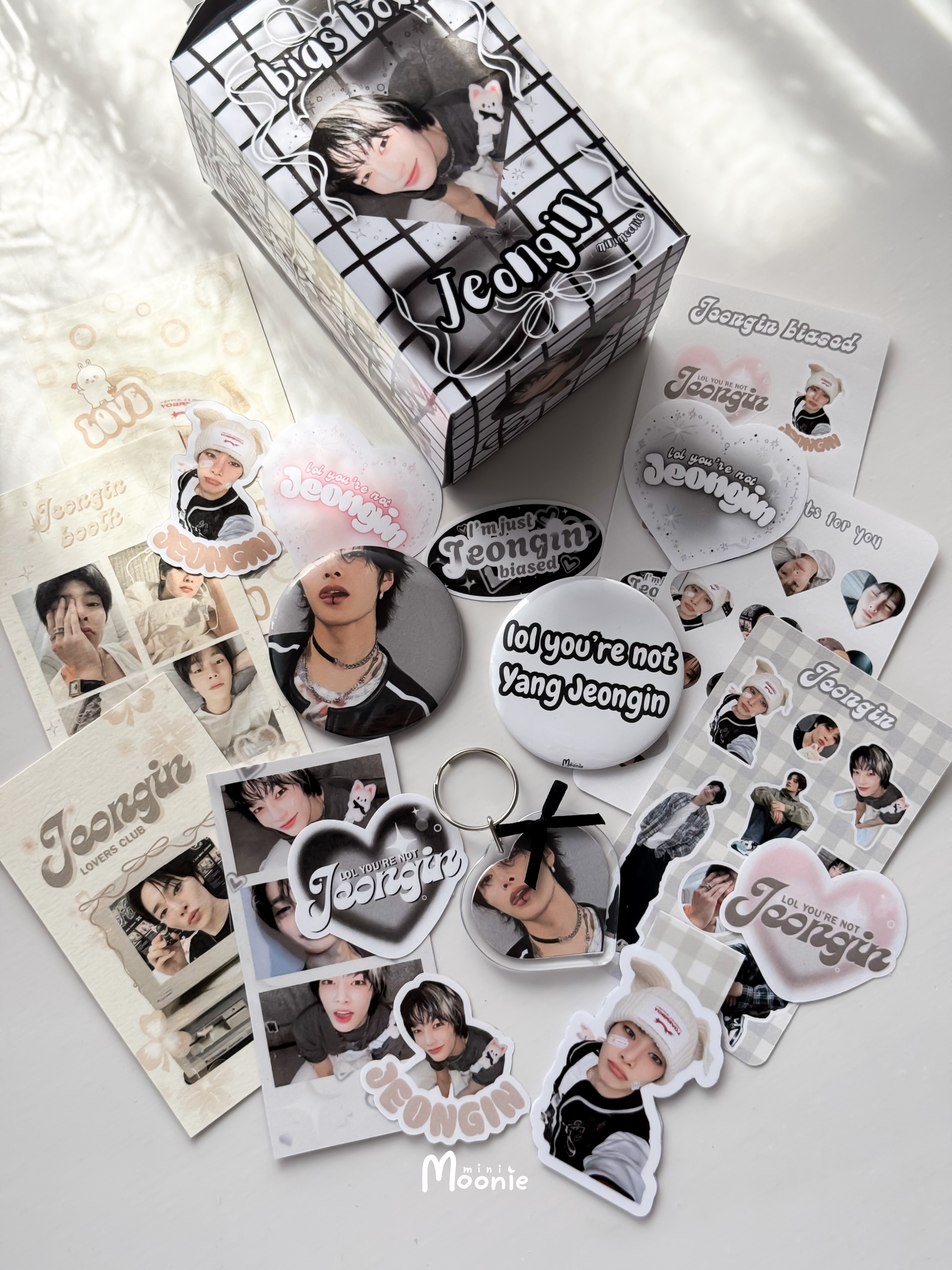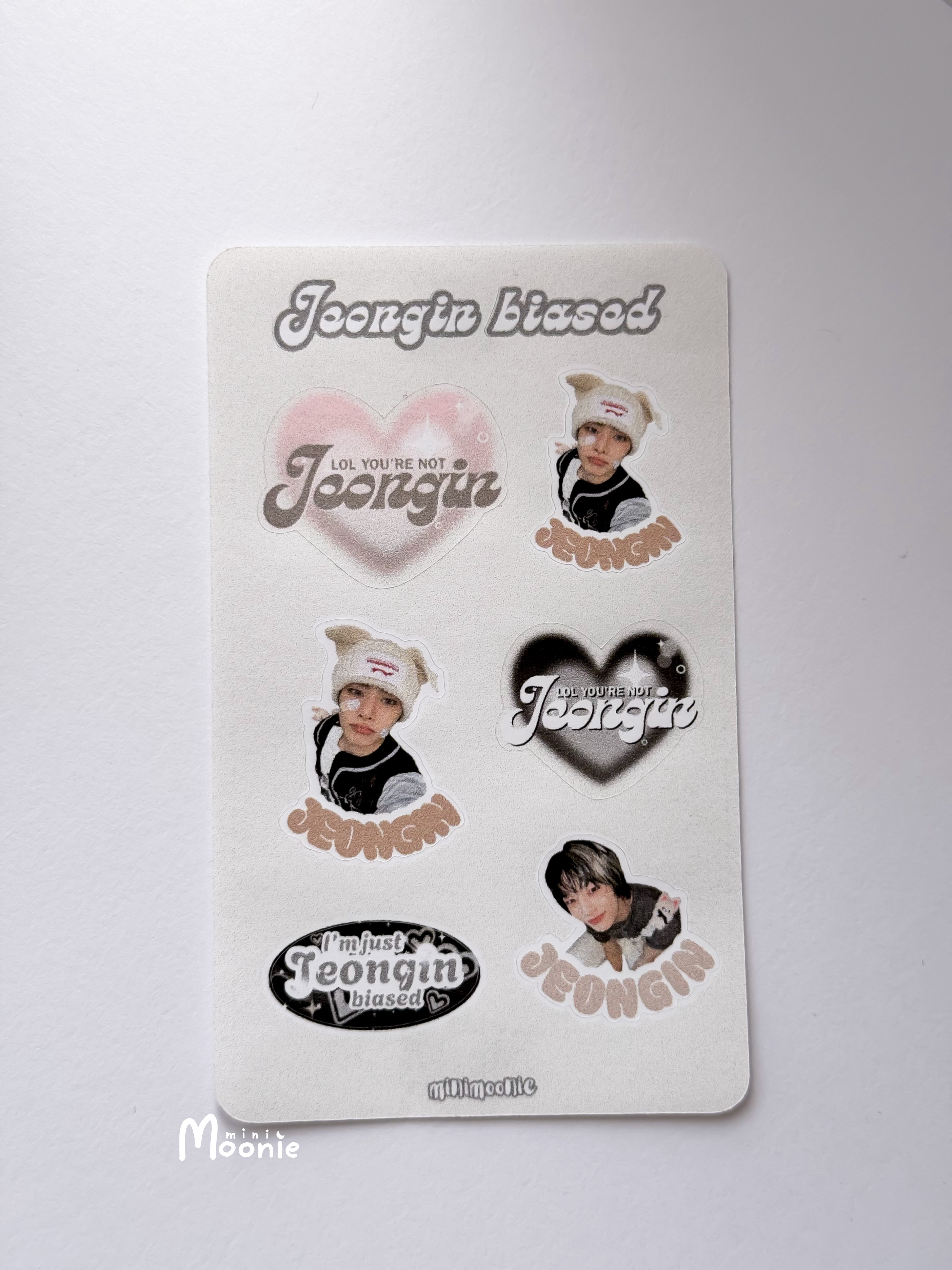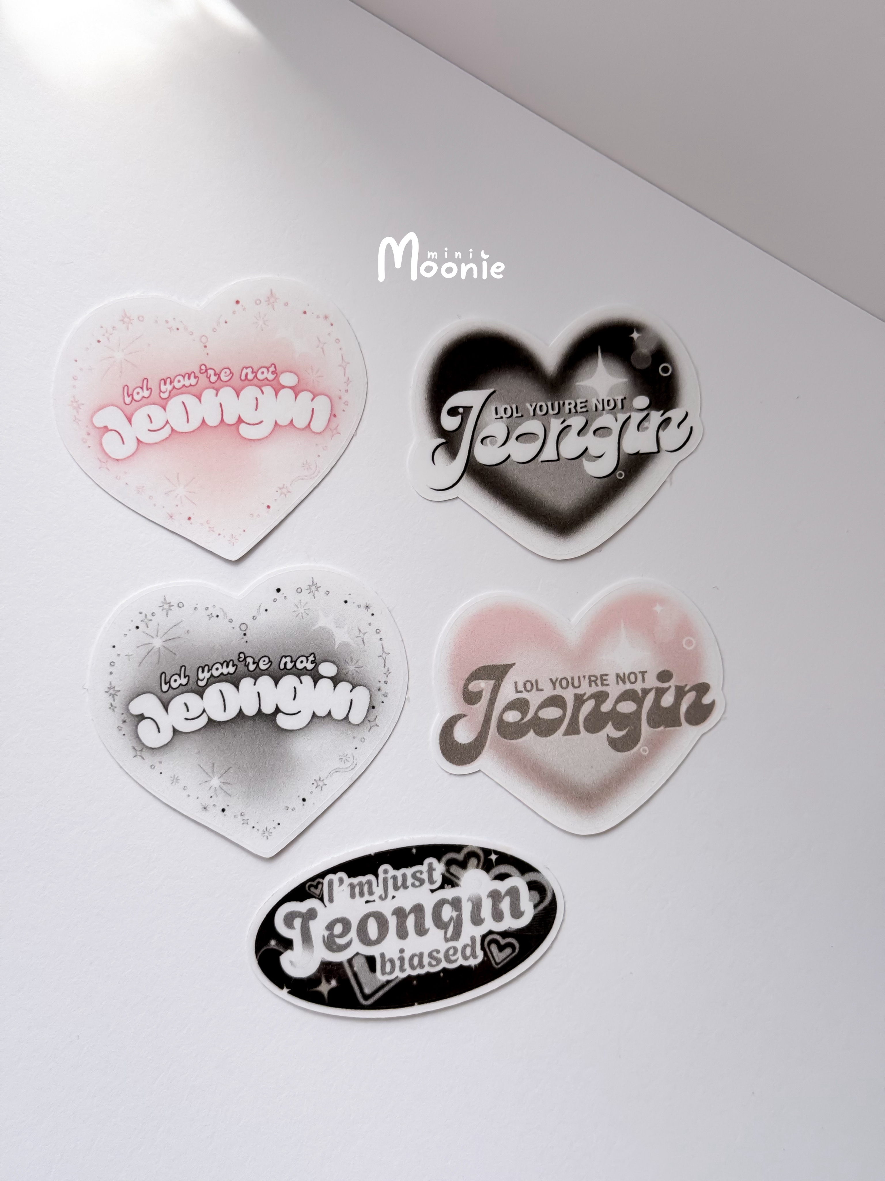 - seven individual die cut stickers ( lol you're not (bias name) 4x with 2 different designs and 4 color variations, I'm just (bias name) biased, bias stickers with their name 2x)